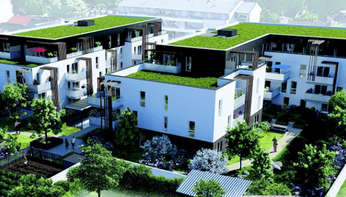 - La résidence se compose de 2 bâtiments avec toiture végétale sur une parcelle hautement végétalisée,